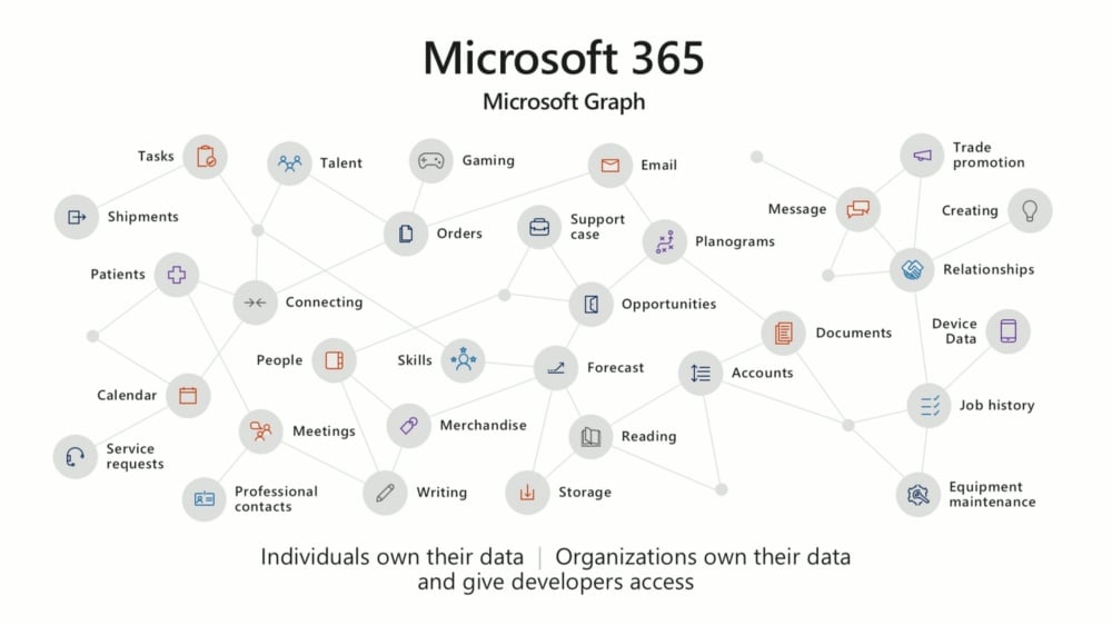 就微軟的想法,Microsoft 365平台將成為串接所有運算需求的管道,同時也將連接所有使用者資料內容與硬體設備,分別可透過傳統鍵盤、滑鼠操作,或是透過手勢、語音聲控等方式操作,另外也能藉由虛擬實境、擴增實境,甚至混合實境等使用模式連接各類互動。