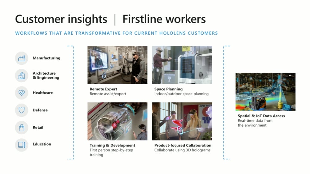 在過去必須透過現地完成的互動體驗,藉由Microsoft 365平台即可讓分散不同地區的使用者透過手機視訊、虛擬視覺互動設備參與相同會議,並且透過此次新增的Microsoft Remote Assist、Microsoft Layout讓使用者能透過虛擬化視覺觀看相同討論內容,並且改善過往此類應用不容易達成互動效果的問題。