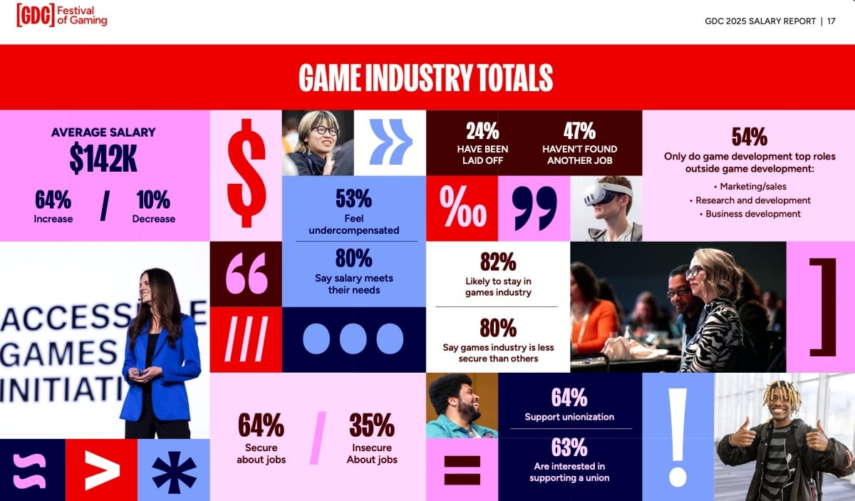 遊戲開發者大會 (GDC)旗下團隊公布《2025年遊戲產業薪資報告》 (2025 GAME INDUSTRY SALARY REPORT),此份以今年7月針對562名美國遊戲產業專業人士進行的調查顯示,儘管面臨了工作室關閉、大規模裁員,以及AI自動化的潛在威脅,美國遊戲業的平均薪資仍在增長,但產業內部的薪酬滿意度、工作穩定性與薪資平等等問題依然嚴峻。