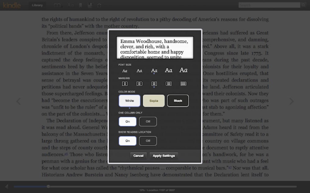 透過官網下載安裝 (或是直接透過Chrome線上應用程式商店下載),使用者就能透過網頁形式觀看個人收藏亞馬遜電子書內容,同時也支援離線瀏覽,或是線上購書,另外也支援以黑暗模式顯示,並且可以調整字體。