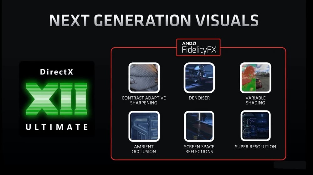 在此之前,AMD便說明新版FidelityFX設計將透過RDNA 2架構與微軟Direct X 12 Ultimate深度整合,藉此發揮硬體等級的即時光影追跡效果,以及可變速率渲染效果,同時也能實現包含網狀渲染與取樣反饋等應用,藉此讓遊戲畫面表現與影像特效處理效能大幅提昇,配合AMD FidelityFX資源更可對應更多圖像處理特效,其中包含超解像處理、雜訊去除,動態對比銳化效果等。