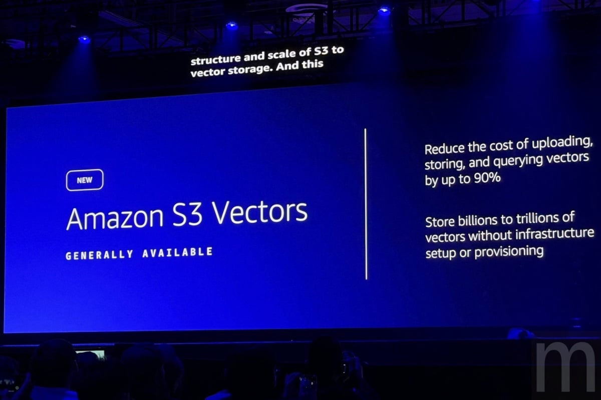 在儲存解決方案方面,AWS正式推出Amazon S3 Vectors,讓開發者能直接在S3原生環境中儲存、查詢向量數據,大幅簡化AI應用 (如RAG檢索增強生成)的架構複雜度。