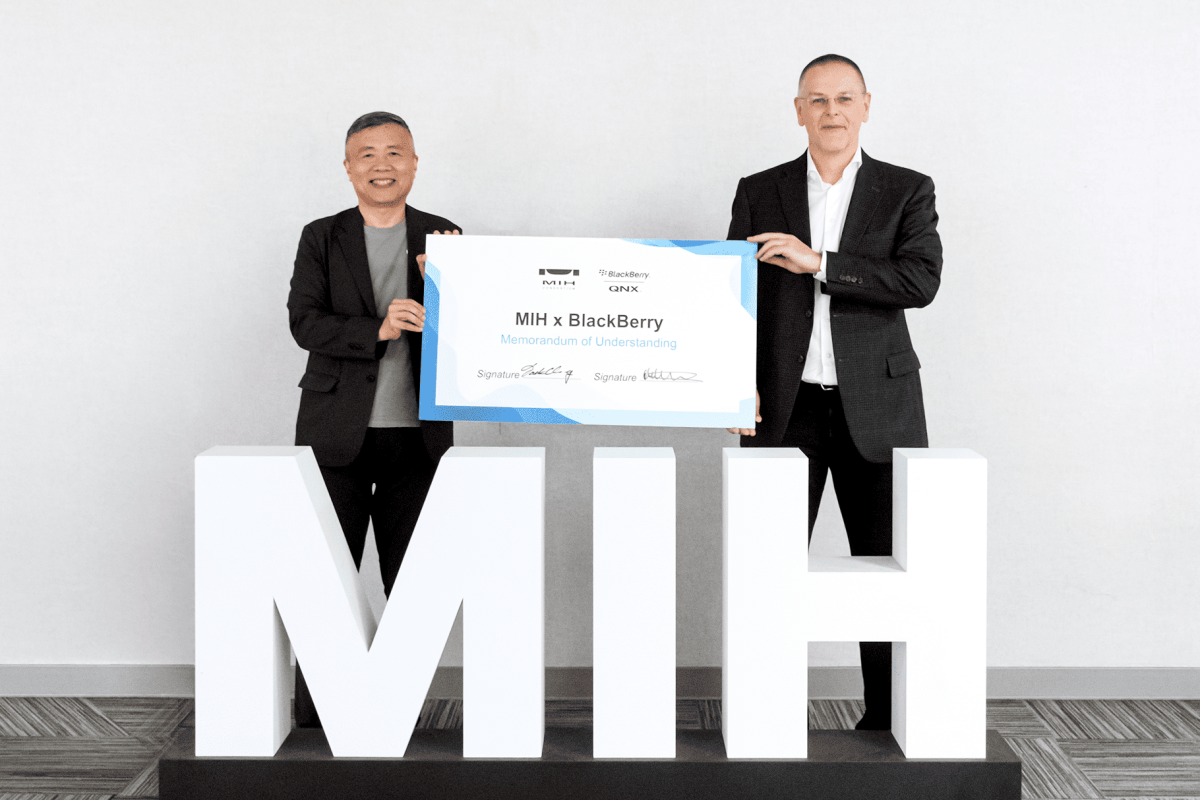 BlackBerry宣布與MIH開放電動車聯盟簽署合作意向書,將由MIH開放電動車聯盟選用BlackBerry軟體作為下一代電動車平台基礎,並且以開放生態系統推動電動車產業轉型及加速創新。