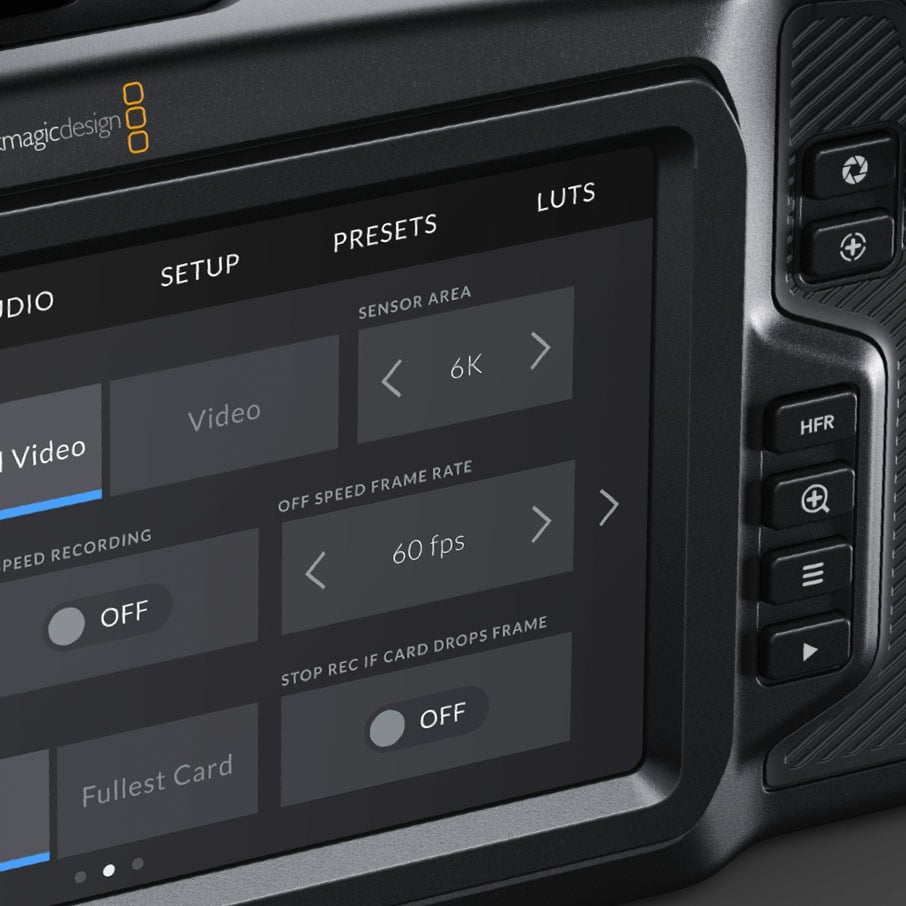 此款新機是以Blackmagic先前推出的Pocket Cinema Camera 4K為基礎,換上更大感光面積設計的Super 35 CMOS感光元件,讓最高解析度可達6K (實際達6144 x 3456),同時藉由更大感光元件設計提高暗部影像細節,並且減少影像雜訊生成比例。