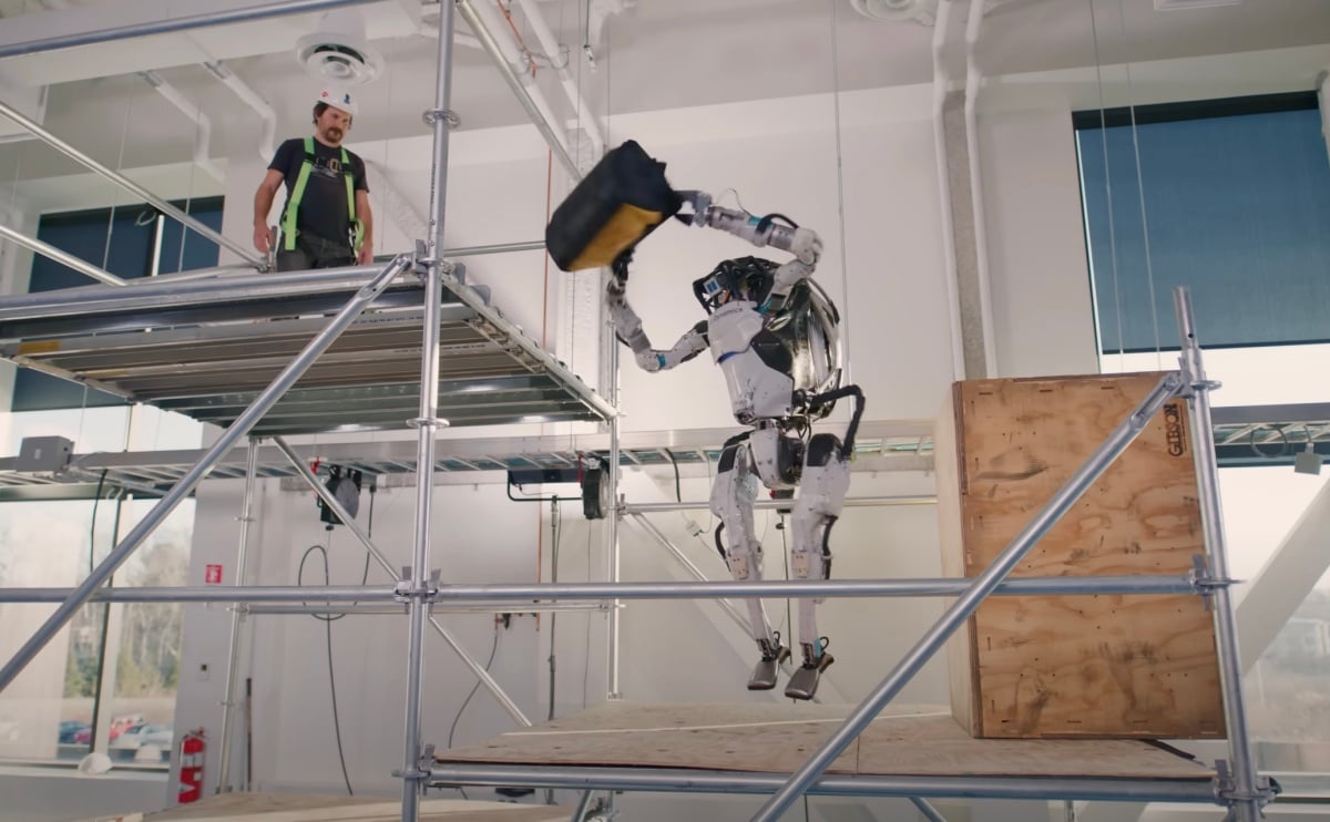 Boston Dynamics稍早釋出影片中,展示其Atlas人形機器人全新活動技術,其中包含可自動判斷行進路線是否需要額外鋪路,另外亦可在狹小空間維持行走平衡,並且在有限空間進行跳躍,甚至以上拋方式投遞工具包。