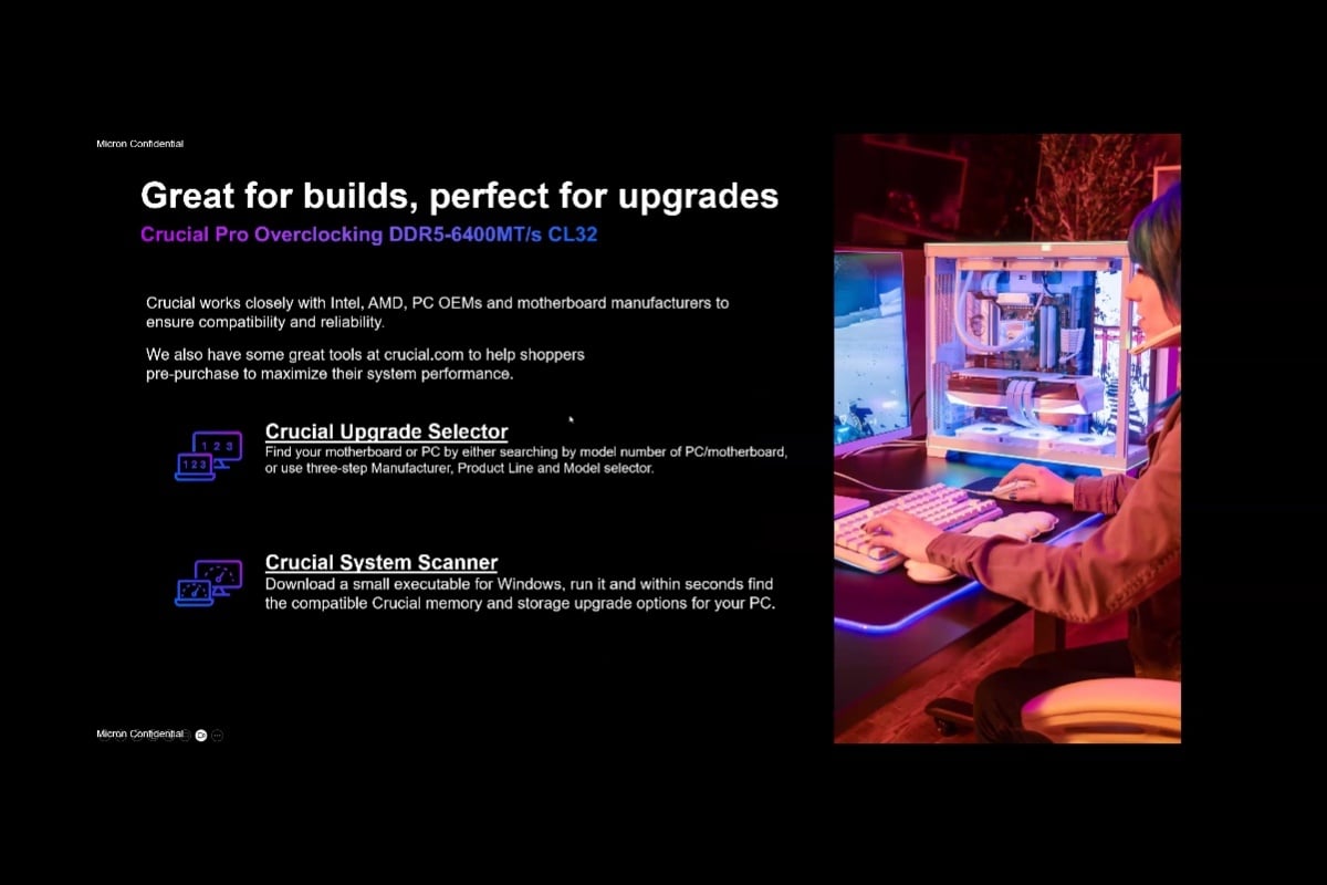 至於是否有機會針對遊戲筆電提供超頻記憶體產品,美光方面則說明由於目前OEM品牌筆電產品在記憶體設定控管較為嚴謹,僅有特定品牌在其筆電產品提供超頻選項,因此未來若更多OEM業者願意開放,本身也會提供相應產品。