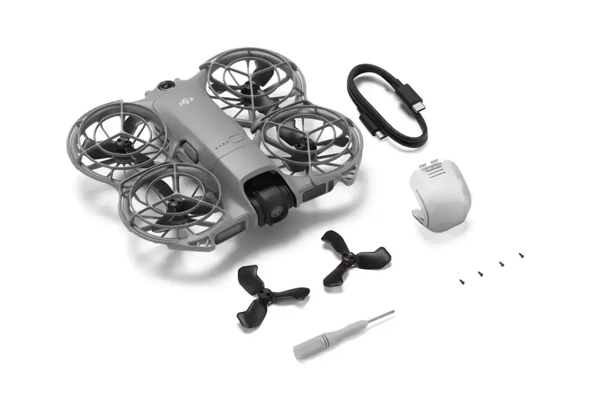 DJI Neo 2基本單機簡配版本 (不含遙控器)的建議售價為新台幣6290元,而DJI也同步推出建議售價為新台幣10490元的暢飛套裝,內容包含飛行器、RC-N3遙控器、3顆智慧飛行電池、雙向充電管家、槳葉防護罩及數位影像傳輸模組等。