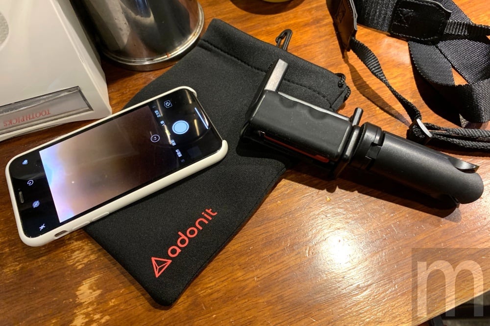 不過,實際使用可以發現隨附小型腳架有點陽春,若如果使用者有進一步使用需求,其實也能換成可隨意彎折固定的章魚腳架,或是其他能更穩固放置的腳架配件使用。另外則是在於夾具設計仍有些不容易操作,同時搭配原廠附贈小型腳架可能會因為夾具固定位置影響重心配置,變成在使用過程可能要稍微留意,否則可能會讓手機倒向另一邊。