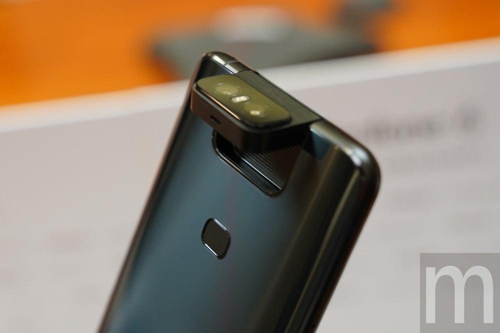 與先前三星Galaxy A80採用可翻轉相機模組相似,ZenFone 6同樣以主相機可180度翻轉形式兼具視訊鏡頭使用模式,同時也能讓自拍影像解析度、畫質表現提昇,而配合可透過手動調整相機上掀角度的設計,更可讓使用者透過不同角度拍攝影像。