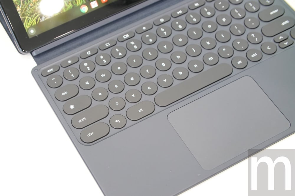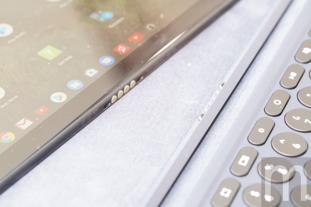 至於鍵盤保護套配件則採磁吸固定方式,不用像先前Pixel C的鍵盤必須透過藍牙配對連接,並且透過Pixel Slate底部金屬接點連接供電運作,同時也能透過磁吸改變支撐角度,讓使用者能以不同角度使用,甚至將平板平放使用。