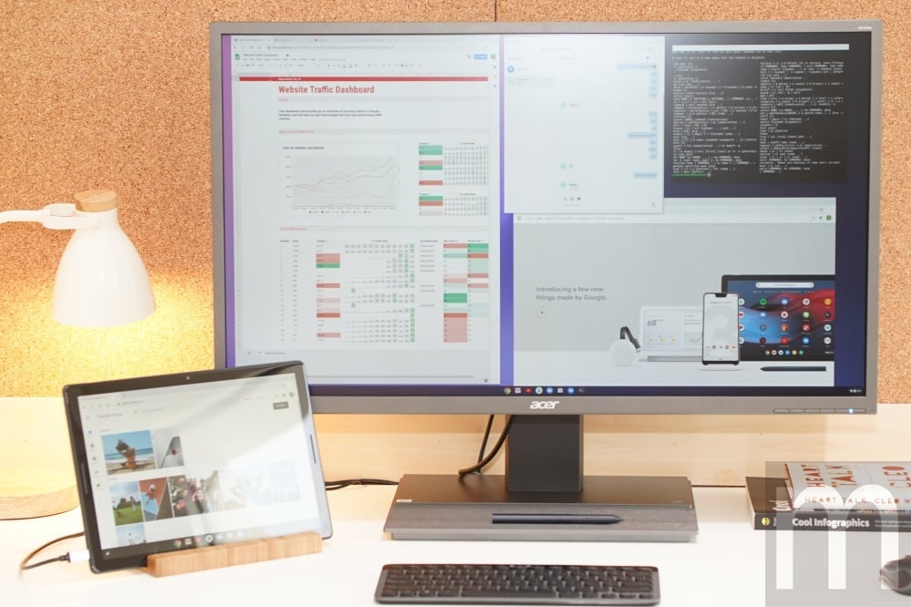 作業系統則針對平板使用情境作了改變,採用觸控為主的操作模式,同時也整合Google Assistant數位助理服務,讓使用者在操作過程中可以更容易找到所需app,同時也能透過Google Assistant輔助各類應用。