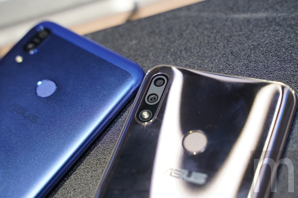 跟ZenFone Max (M2)採背面打霧設計的情況比較,ZenFone Max Pro (M2)以玻璃背蓋呈現流金質感設計,並且分別採用1200萬畫素+500萬畫素鏡頭組合的主相機,並且將視訊鏡頭解像能力提昇至1300萬畫素規格,拍攝功能同樣加入自動場景識別與美顏效果。
