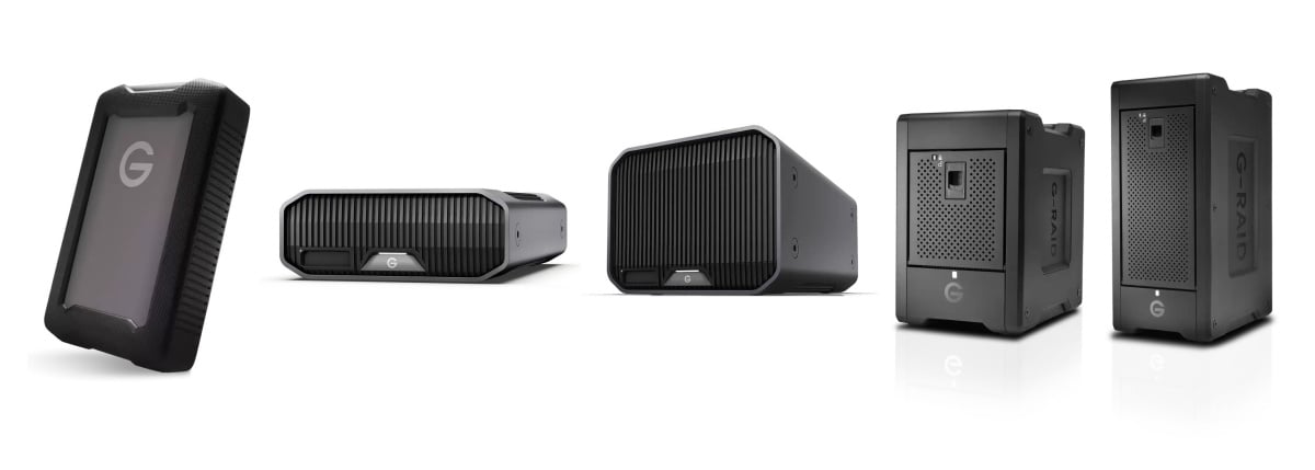 • G-DRIVE:適合工作站使用的高容量桌上型硬碟,最高容量達26TB,提供穩定的傳輸效能以應付剪輯與備份需求。