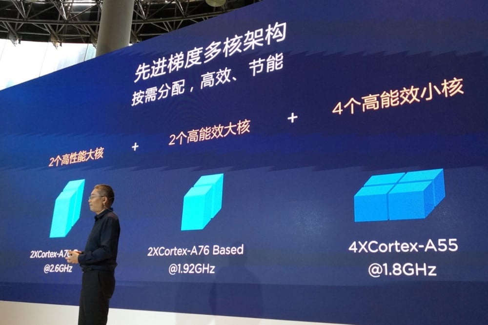 而針對Kirin 980採「2+2+4」核心架構設計,其中率先採用兩組arm Cortex-A76的大核運作時脈為2.6GHz,而另外兩組Cortex-A76大核則以1.92GHz時脈運作,其餘4組Cortex-A55小核則以1.8GHz時脈運作。