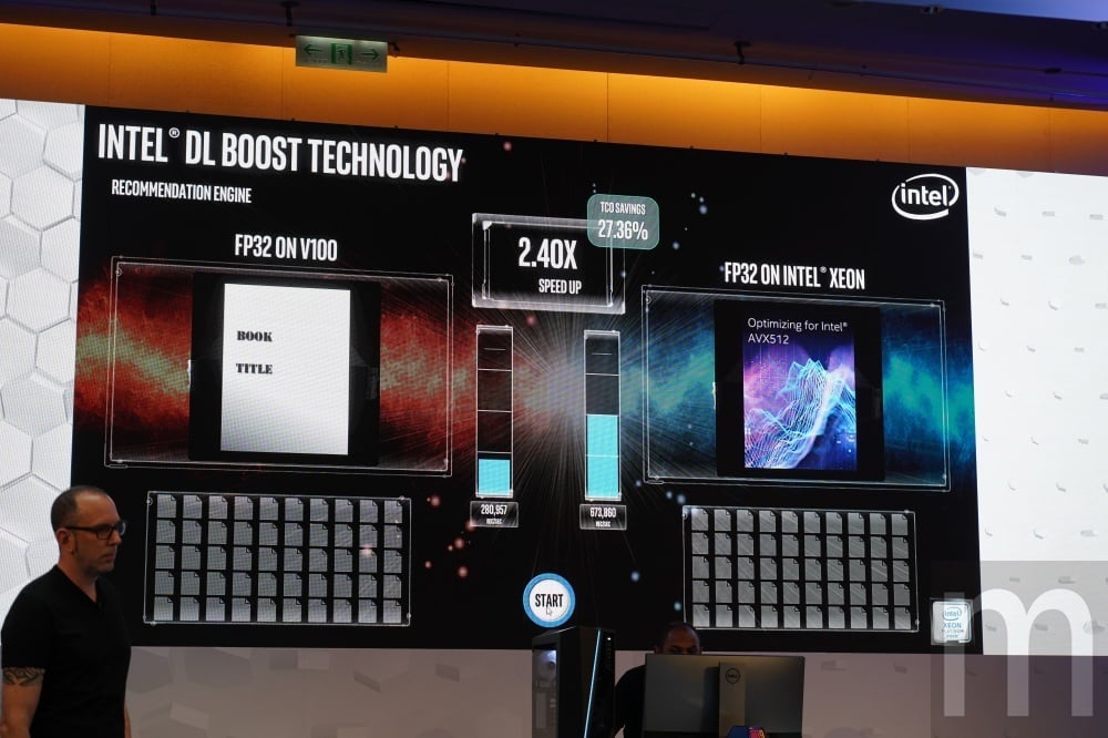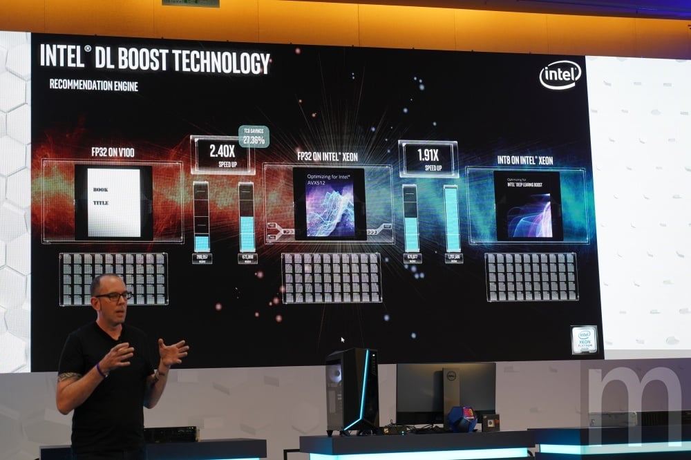 針對今年4月初正式揭曉、代號Cascade Lake的第2代Xeon Scalable可擴充伺服器處理器,Intel強調藉由加入DL Boost技術,將可讓人工智慧運算效能提昇30倍,相比藉由GPU加速的伺服器運算效能提昇2.4倍左右。