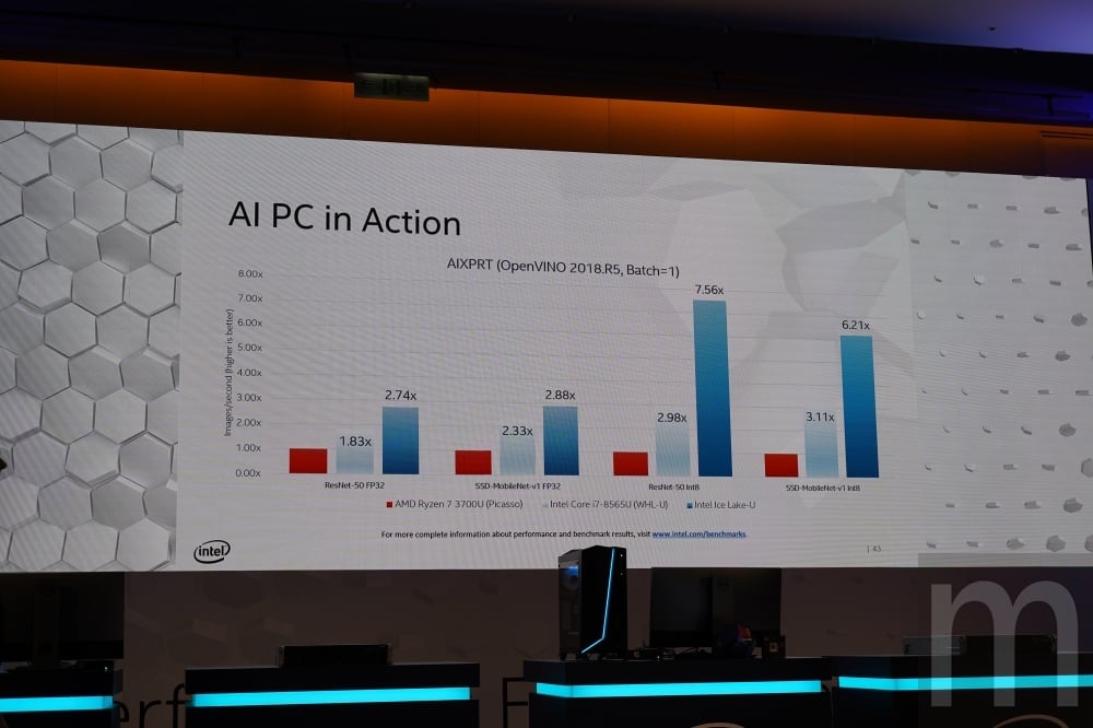 相比藉由GPU加速的伺服器運算效能 (以NVIDIA Tesla V100作為比較)約可提昇2.4倍左右,若與先前處理器產品比較,則約提昇1.9倍左右,同時強調在圖像辨識、物體偵測,以及圖像分割等人工智慧運算推理工作負載的處理速度可加快14倍以上。