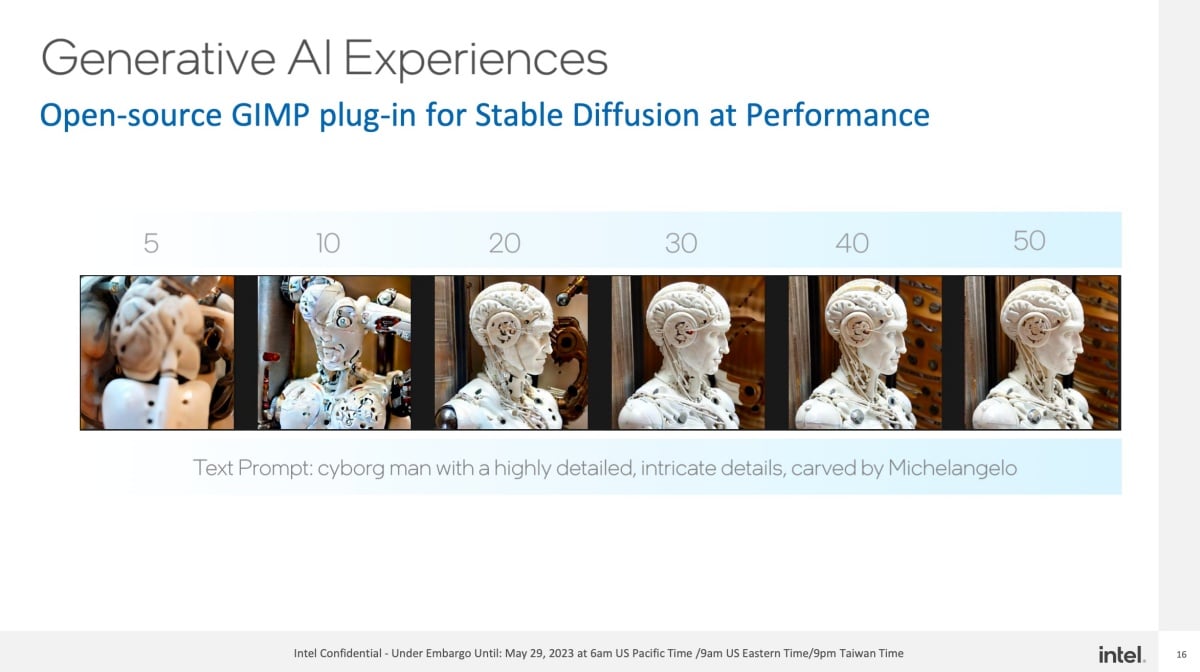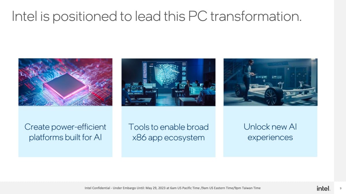 在此次Computex 2023展前活動所作說明,Intel表示將從代號「Alder Lake」及「Raptor Lake」處理器產品採用的Intel 7製程,進展至代號「Meteor Lake」與「Arrow Lake」採用的Intel 4製程技術,以及Intel 20A製程設計,並且強化用電效率表現與人工智慧應用。