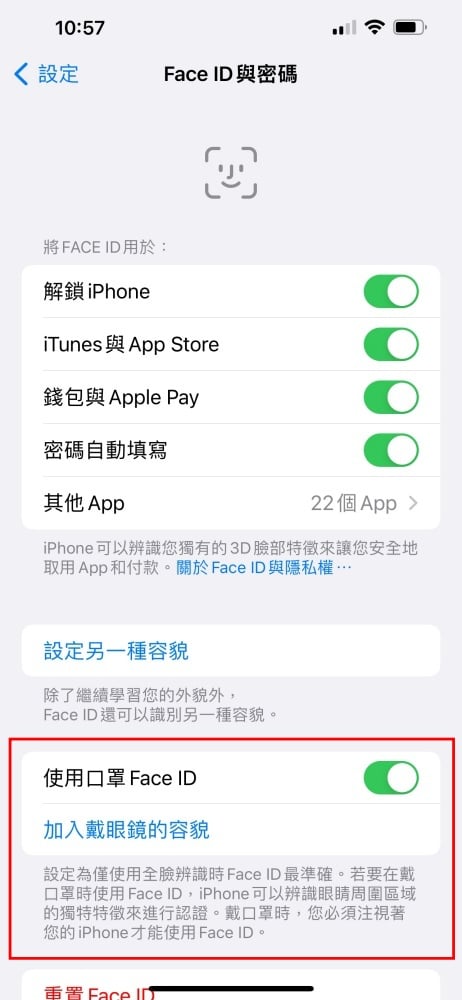可在配戴口罩情況下完成臉部解鎖的機種僅限iPhone 12以上規格