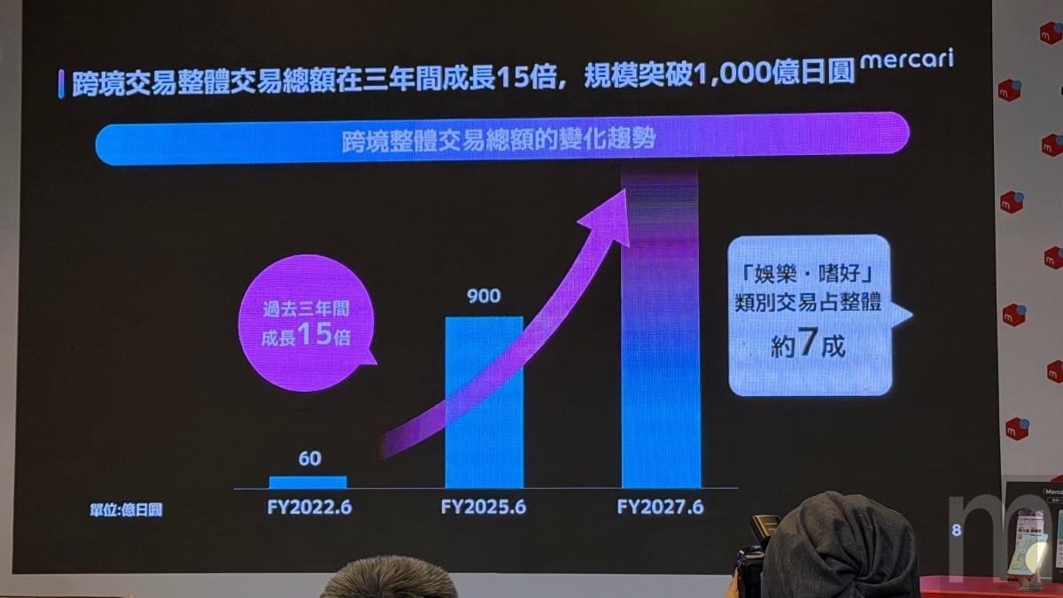 Mercari台灣事業負責人石川佑公布其全球跨境業務的成長數據,其跨境商品交易總額 (GMV)在過去三年內成長高達15倍,截至2025年6月的會計年間,規模已達到1000億日圓 (約新台幣200億元)。
