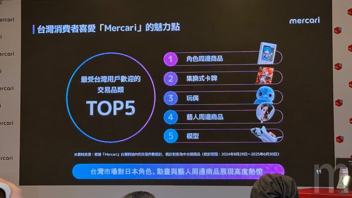 其中,台灣市場的熱度尤為顯著,在進入台灣市場僅一年的時間,便吸引超過30萬名用戶註冊。Mercari分析,平台憑藉其商品多樣性與稀有度 (特別是由日本賣家上架的娛樂、嗜好類商品),以及簡單直覺、可安心付款的介面,成功獲得台灣用戶支持。