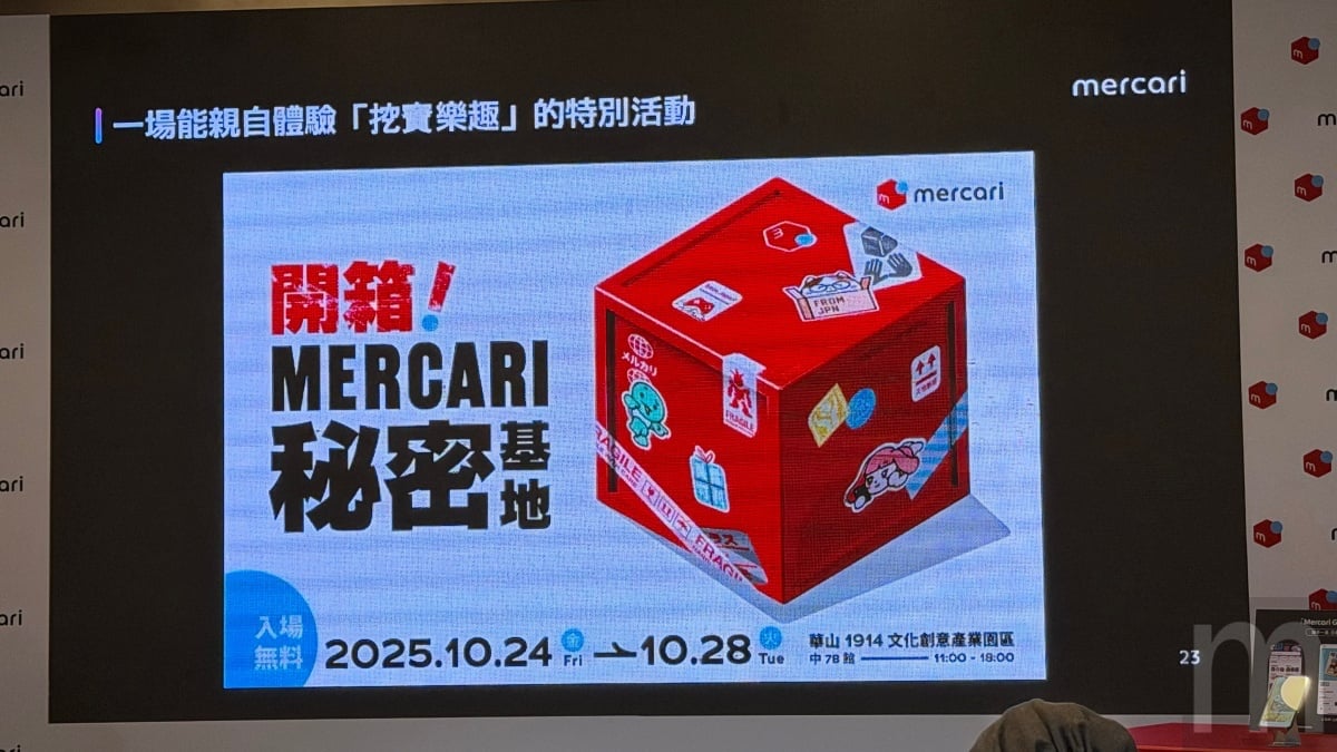為深化在地連結,並且推廣「挖寶」樂趣,Mercari將於10月24日至10月28日期間,於每日上午11點至下午6點在華山文創園區舉辦「開箱!MERCARI秘密基地」特展,並且採免費入場體驗形式展出。