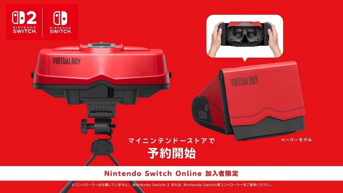 任天堂同步推出對應周邊「Virtual Boy for Nintendo Switch 2 / Nintendo Switch」,目前已在My Nintendo Store開放預購,但僅限加入Nintendo Switch線上服務的玩家預約。不過,任天堂也預定提供紙板模型構成的陽春版Virtual Boy眼鏡周邊,使用上自然會有一定落差,但仍可讓使用者感受當年「Virtual Boy」帶來的遊玩體驗。