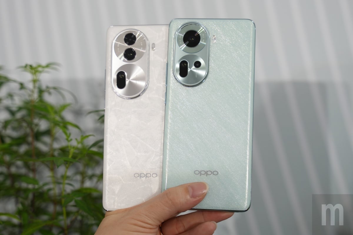 Reno 11在廣角鏡頭採用的是Sony LYT-600感光元件,Reno 11 Pro則採用Sony IMX890感光元件,在色彩表現上會有些差異。同時,藉由將Find系列旗艦手機的人工智慧技術與圖像引擎演算法下放,OPPO也強調可藉由人像是別將人物與背景分開運算,並且強化人像膚色等細節進行調整,讓Reno 11系列機種人像拍攝表現更加出色,並且創造數位單眼相機拍攝效果,甚至能透過後期觸控重新調整聚焦位置。