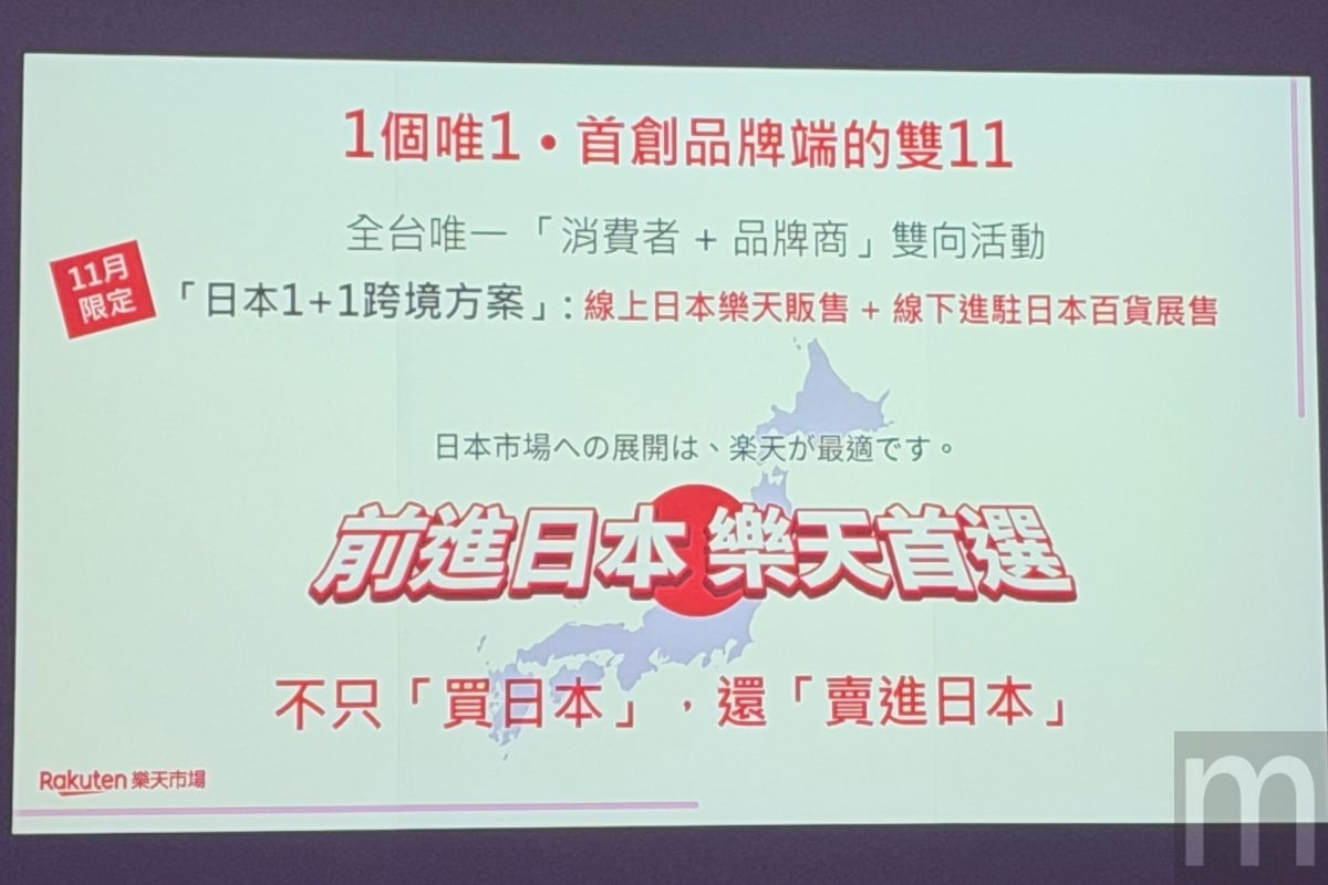 而台灣樂天市場更說明打造全台唯一「消費者+品牌商」雙向活動,將透過樂天首選項目協助品牌商以跨境電商形式,將台灣商品透過日本樂天市場線上銷售,並且透過線下方式進駐日本百貨展售。
