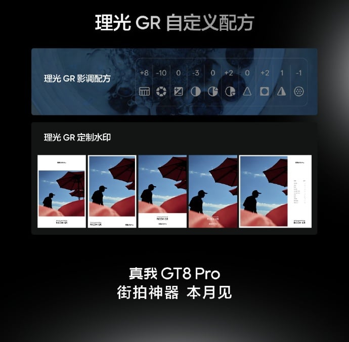 在合作細節中,realme GT8 Pro將導入來自Ricoh的高對比黑白、正片、負片、標準與單色在內五大GR影調,讓使用者能以此拍出更具底片質感的影像,同時也能根據個人審美偏好自訂影調配方。
