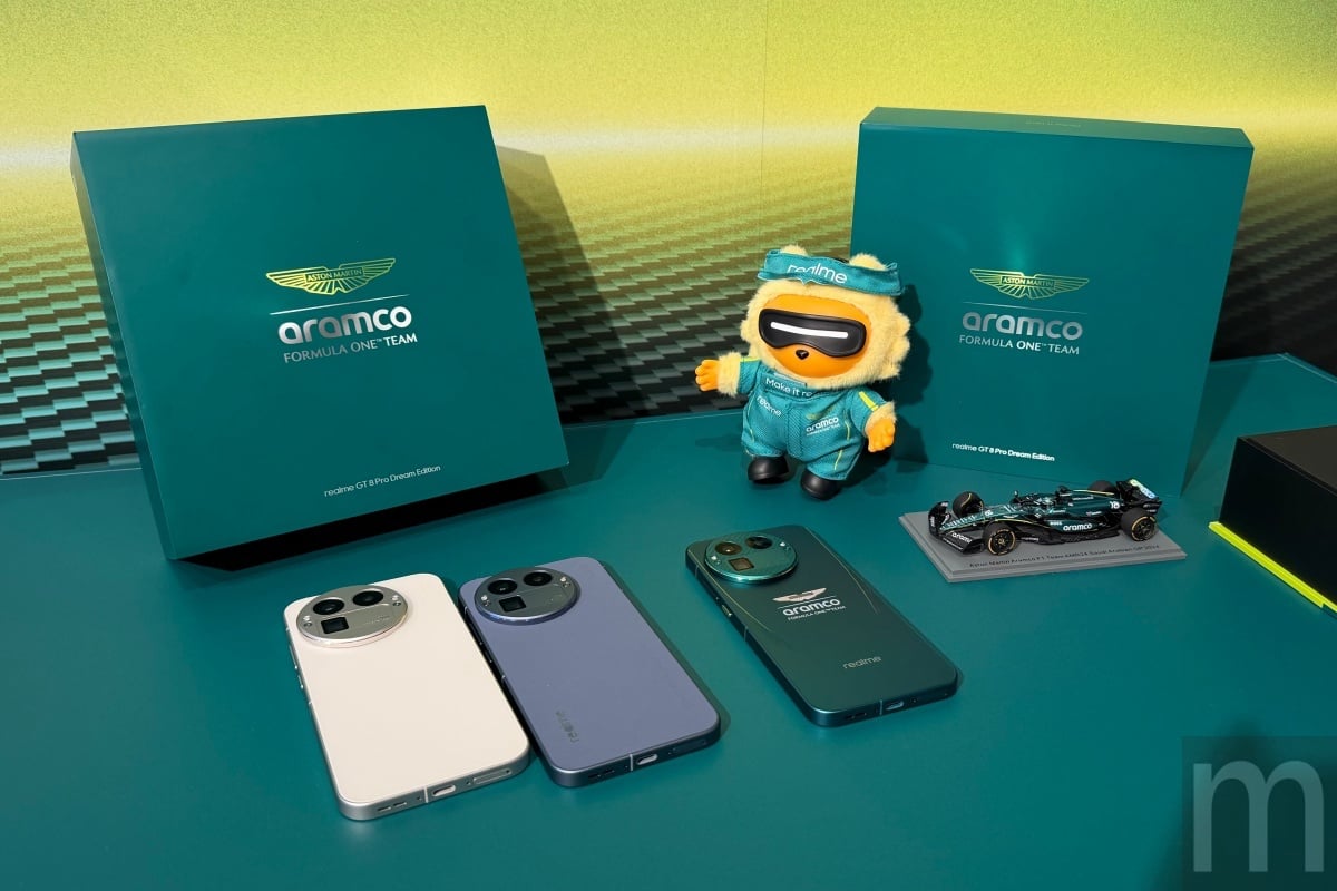 此次登台,realme更額外宣布引進realme GT 8 Pro奧斯頓馬丁Aramco F1車隊聯名款。機身設計以經典的「奧斯頓馬丁綠」呈現,大膽點綴車隊新賽季的「萊姆綠」線條,背蓋更鑲嵌車隊規格的銀翼徽章。這款限量版不僅呼應了內建Qualcomm Snapdragon 8 Elite Gen 5處理器的極致效能,也透過精密工藝展現出賽車與旗艦手機結合的雙重美學。