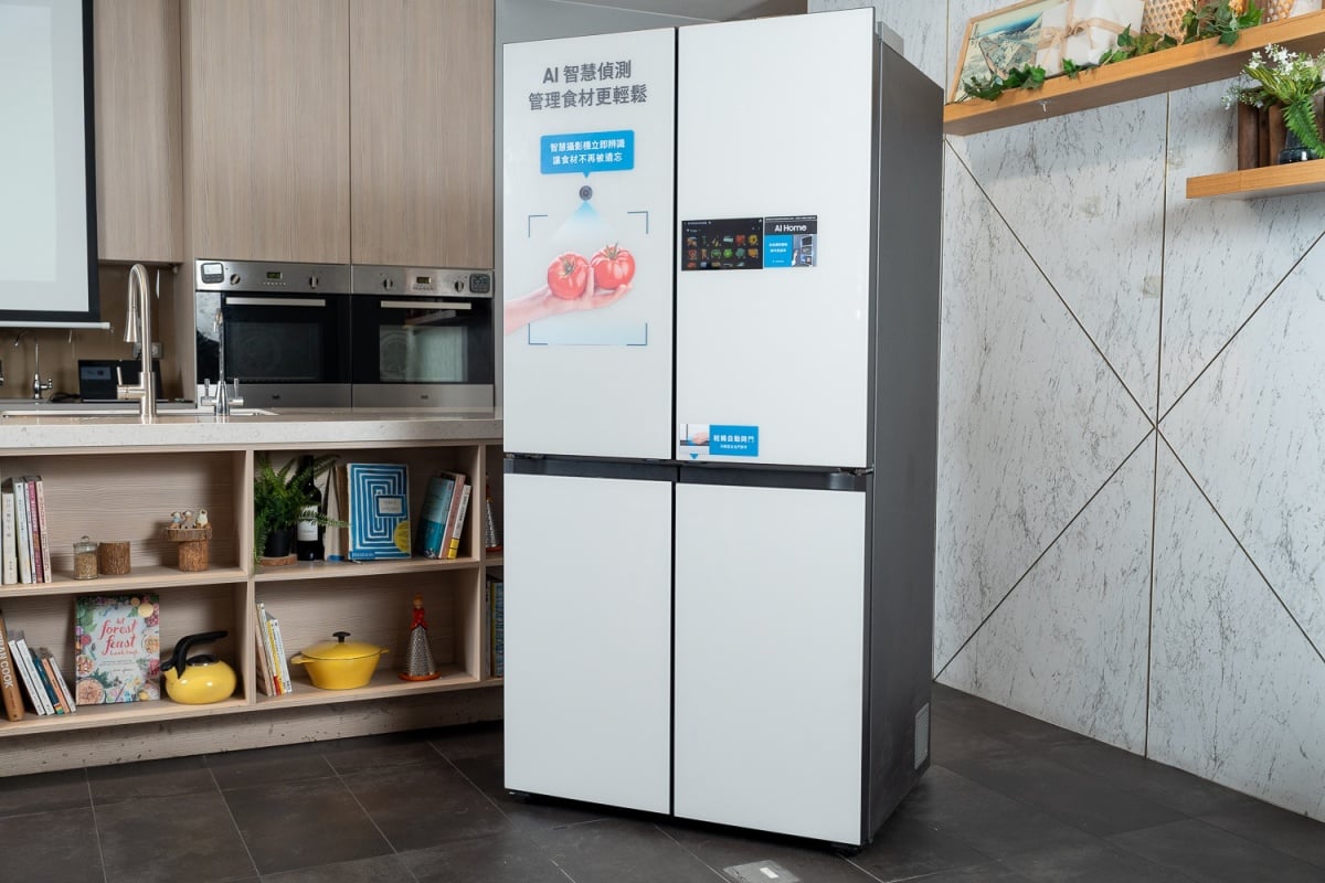 三星則在此款冰箱導入AI智慧食材偵測鏡頭,最多可辨識37種生鮮食材與50種加工食品。而使用者外出購物時,亦可透過SmartThings App遠端查看冰箱內剩餘食材,甚至在食材到期前收到通知提醒,避免浪費。