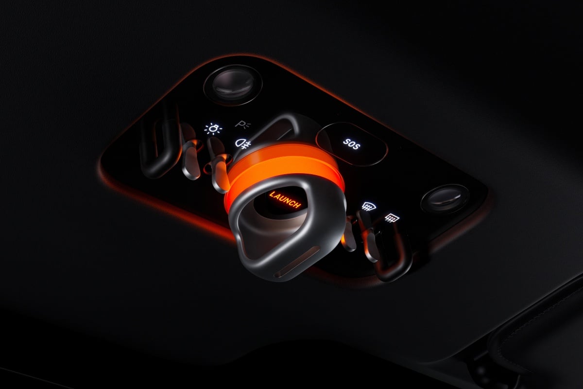 但最令人驚喜的互動設計,則是在於「鑰匙」。Luce的車鑰匙嵌入一塊黃色的電子紙 (E Ink)面板,當把鑰匙插入中控台的磁吸插槽時,鑰匙上的黃色會慢慢變暗,彷彿將能量與生命「傳輸」到發光的玻璃排檔桿上。這種充滿儀式感的細節,正是Jony Ive的拿手好戲。