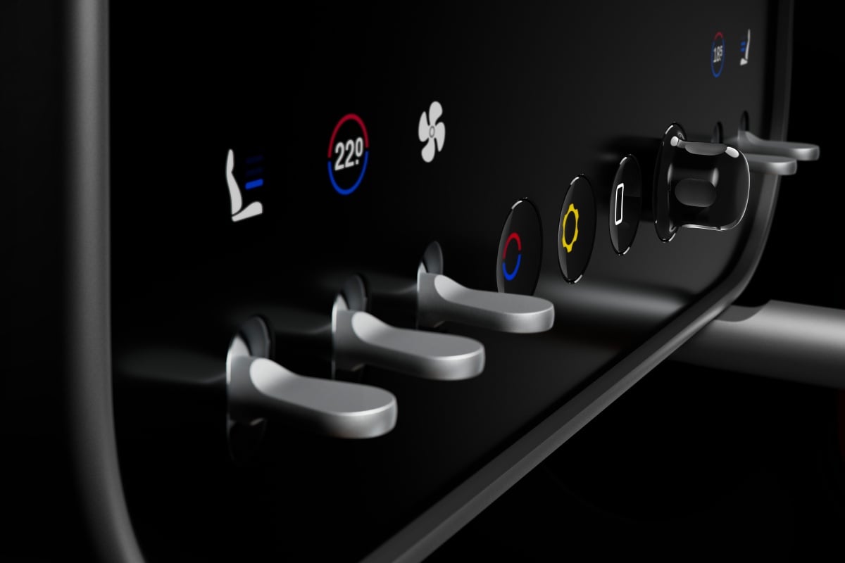 在Tesla帶動「大螢幕消滅實體鍵」風潮下,Jony Ive與其合作夥伴Marc Newson卻反其道而行,他們認為現代汽車失去了老法拉利那種迷人的「觸覺」 (Tactility)。因此,Luce的內裝保留了大量實體控制元件: