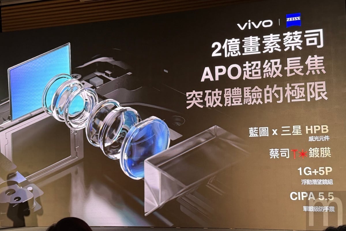 • 蔡司2億畫素APO超級長焦:採用 1/1.4 吋超大 HPB 訂製感光元件,搭配浮動潛望鏡組設計與蔡司 APO 頂級色差控制技術、升級版 T* 鍍膜,支援 CIPA 5.5 單眼級防手震。