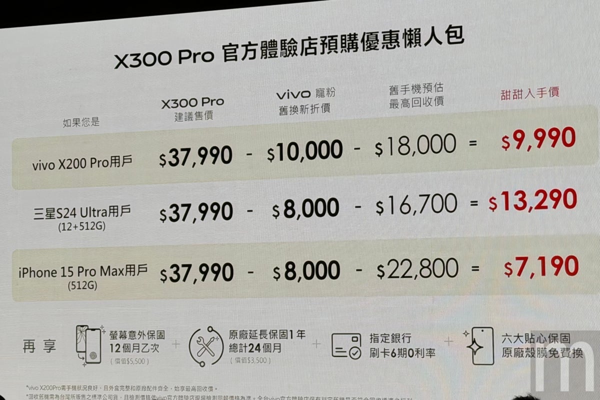 • 指定電商: 預購 X300 Pro 登錄贈旅遊券 5000 元;預購 X300 贈增距鏡套裝。