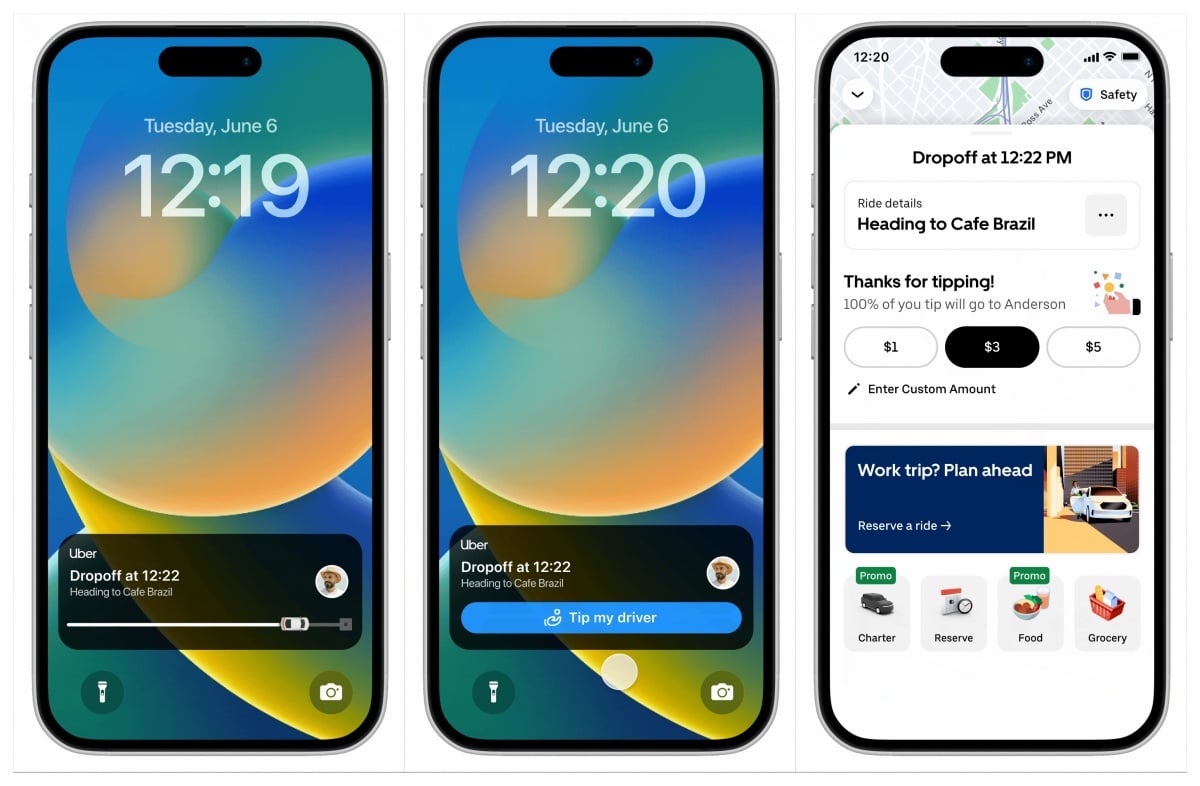 此次另一個針對iOS平台介面更新,則是配合iOS即時動態顯示功能,讓使用者能在Uber服務搭乘行程即將結束之前,即可在鎖定螢幕介面直接向駕駛人支付小費,無需等到行程結束才能操作。